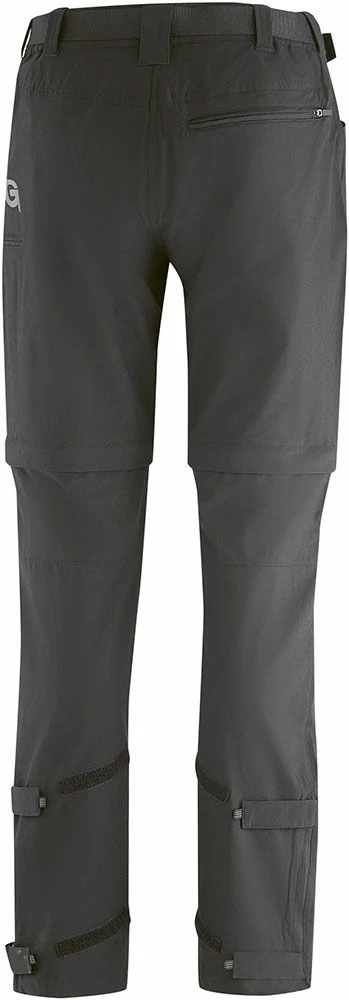 - Partially elastic waistband with belt, zip-off legs