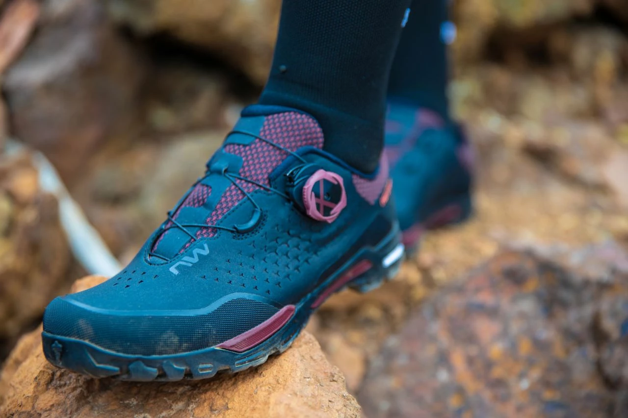 Northwave developed this sole with Michelin Technical Soles to combine XC performance with the traction to walk securely on any terrain. The calibrated stiffness midsole unleashes pure power in the pedal area, while the more flexible medial zone makes it feel great when walking. The tread, whose pattern is inspired by two Michelin off-road tyres, and the outer shell are made from 100% Michelin rubber which is 28% more wear resistant than TPU and delivers excellent grip in all weathers.