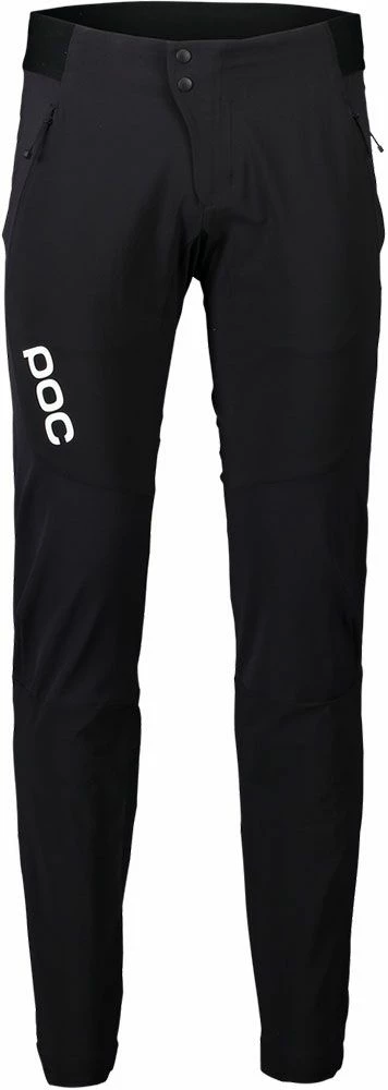 Matching the POC VPD knee pads, the trail pants feature a narrow tapered leg to minimize excess fabric and provide maximum space around the ankles so they don’t interfere with riding. A seamless gusset provides comfort in the saddle, and an elastic waistband lends a comfortable, secure fit. Zippered welt pockets and a zippered map pocket keep your personal items safe on the trails.