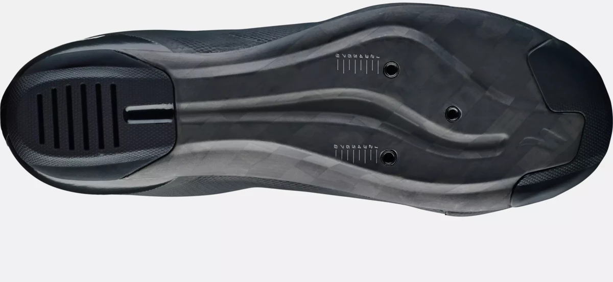– Carbon sole with a 7.0 Stiffness Index is engineered to be moderately stiff, yet light with a rubber heel and toe for off-the-bike traction.